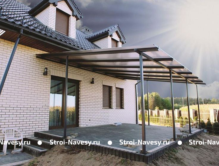 Односкатный навес пристрой над крыльцом с кровлей из поликарбоната