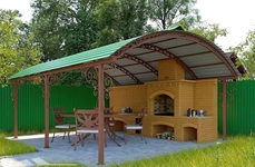 Арочный навес с профлистом и элементами ковки для мангальной зоны